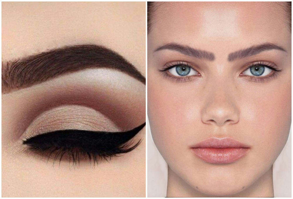 Широкий лоб и существенное сужение черт лица к подбородку будут скорректированы мягким изгибом бровей.