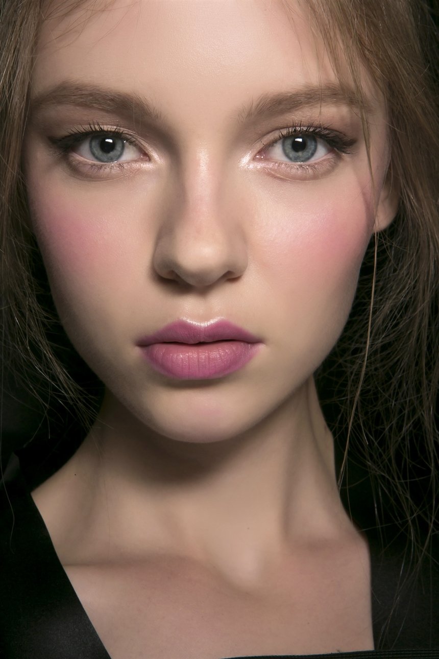 На известных показах блистали модели с однотонным румянцем не только на скулах, но и на веках и губах.
