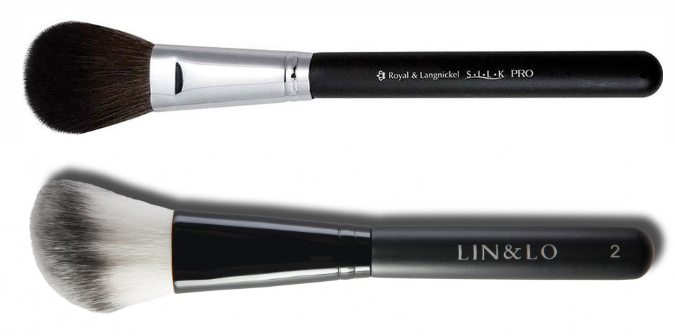 Для любительниц сухих текстур подойдет полноразмерная кисть с длинным ворсом, более кремовые текстуры лучше наносить при помощи узкой скошенной кисти. И синтетические и натуральные инструменты для нанесения макияжа требуют постоянного ухода.