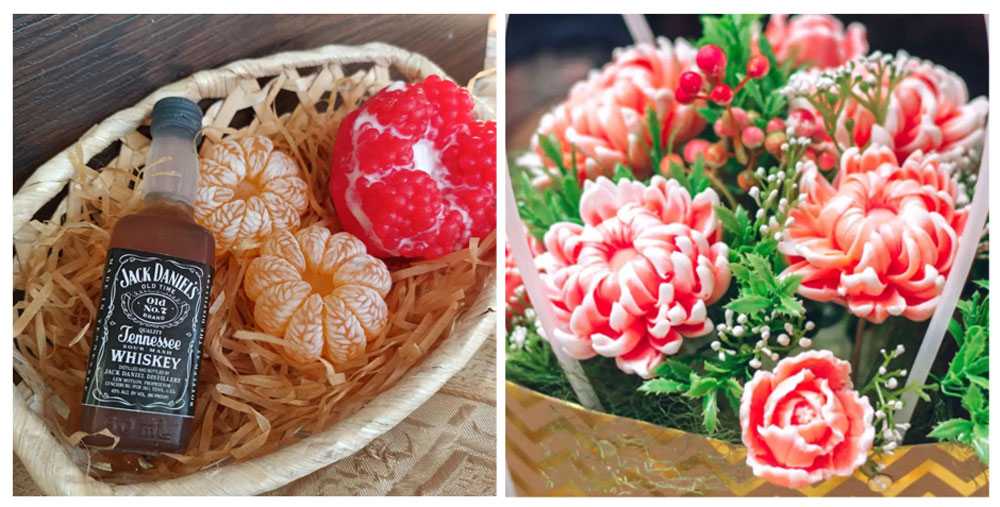 Производителям мыла ручной работы продавать свою продукцию наборами сами бог велел. Обыграть формой и стилем своего товара можно практически любую тему, создать подарок для представителя любой профессии, сделать мыльные буквы и составить из них любые слова. Пожалуй, самыми привлекательными и “аппетитными” мыльными наборами выглядят те, где мыло представляет собой сладости — пирожные, пончики, зефир, ягоды. В таком случае на покупателя можно воздействовать сразу через несколько органов чувств, заставляя работать не только глаза и обоняние, но и пробуждая вкусовые рецепторы.