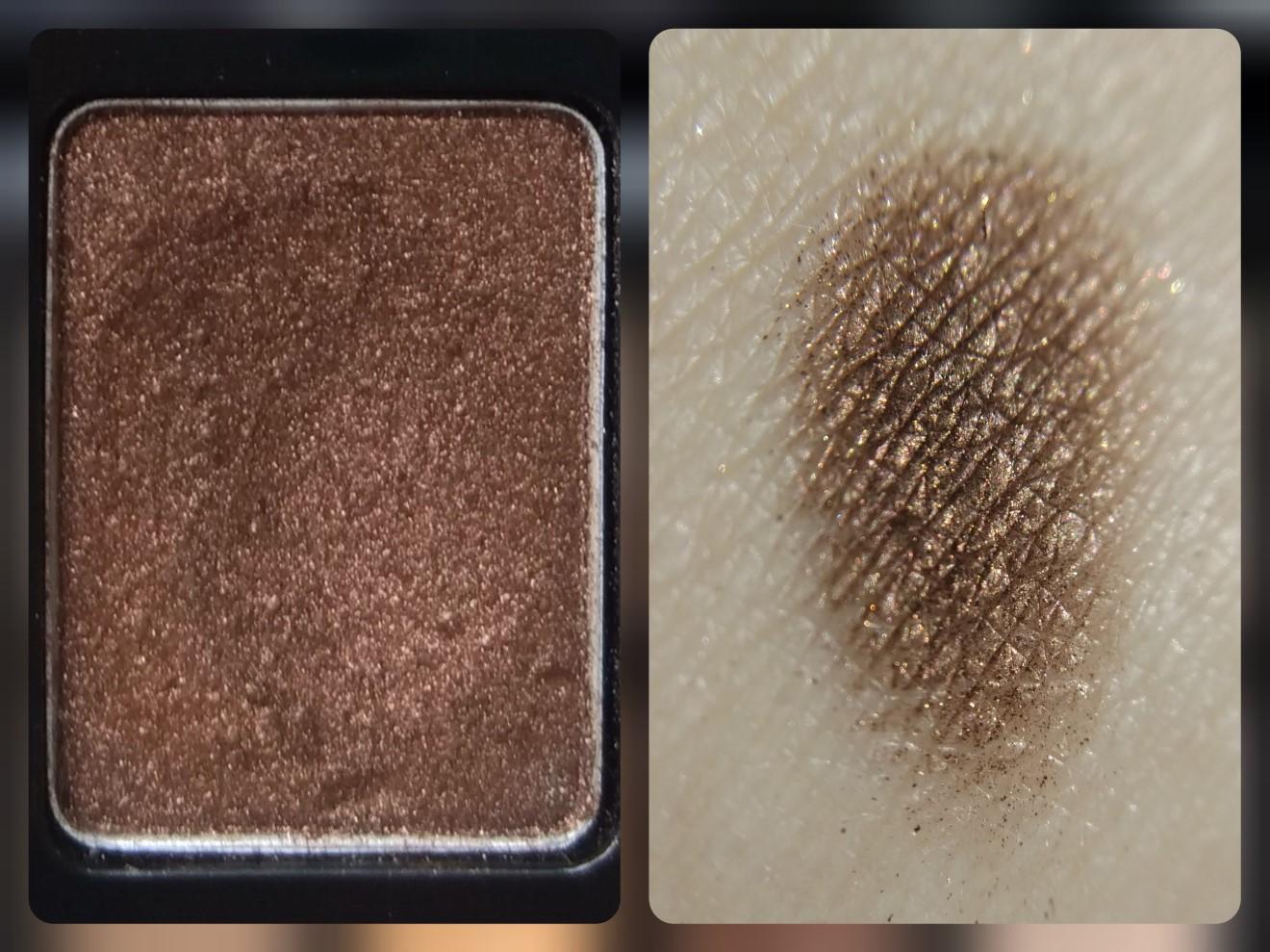 Оттенок #11 — землисто-коричневый, которым очень удобно прокрашивать складку подвижного века. Высокая пигментация. Матовый оттенок, очень рассыпчатый и рыхлый, с излишком набирается на аппликатор, с которого сыплется в процессе макияжа. При неправильном нанесении может создавать грязь на веке.