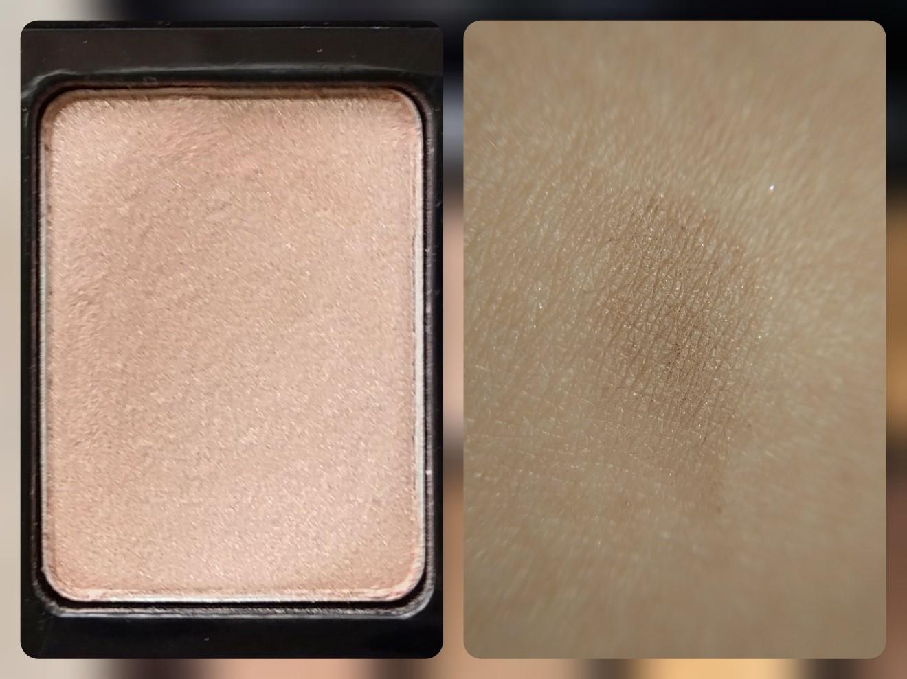 Оттенок #2 с полуматовым сатиновым эффектом даёт неяркое покрытие цвета кофе с молоком, который почти совпадает с оттенком кожи, хорошо растушевывается с другими тенями из своей гаммы. Текстура очень бархатистая.