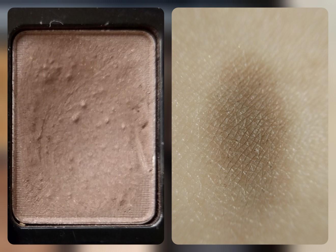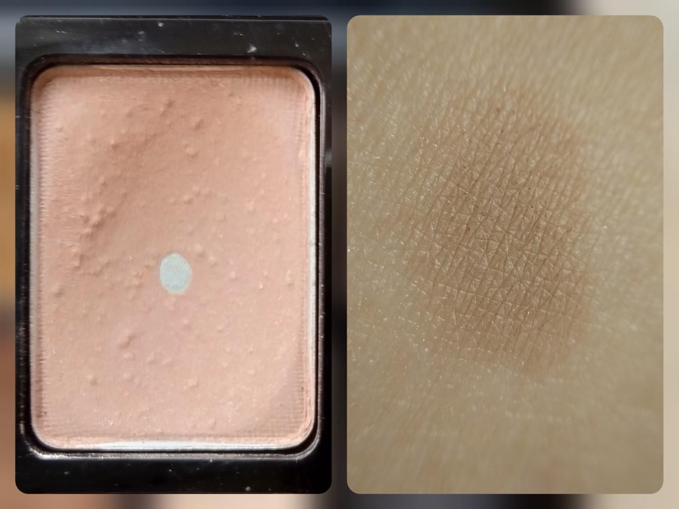 Оттенок #4 — самый темный в первой четвёрке из палетки, бежево-коричневый и абсолютно матовый. Захватывается с большим излишком, что приводит к осыпанию со спонжика. Замечательно оттеняет перламутровый и шиммерный оттенок из гаммы.