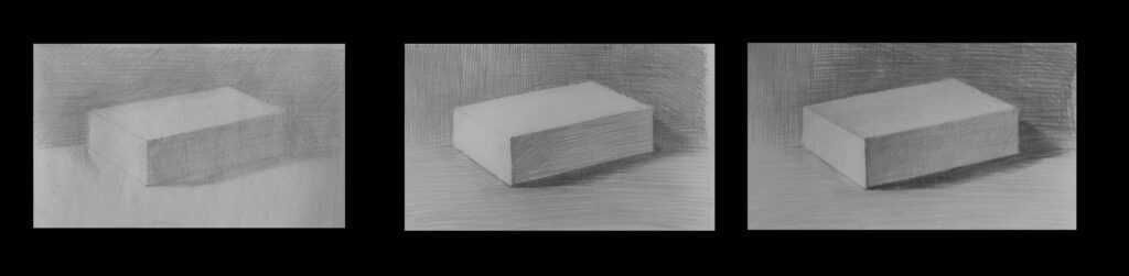Обратите внимание, что чем ближе к нам, тем темнее тень и тем светлее свет. Белая бумага остается только в самой ближней части самой светлой грани.