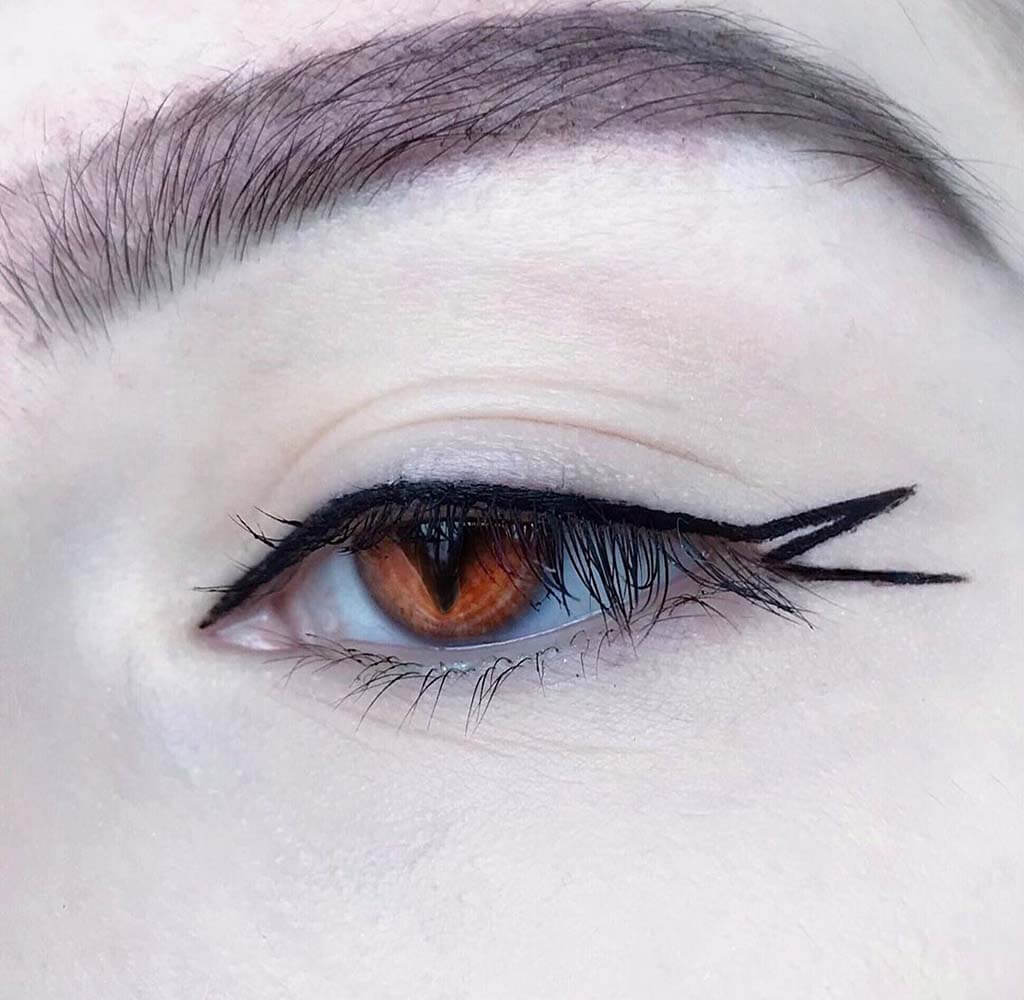 - К внешнему уголку провести плавную стрелку от центра нижнего века, чтобы «распахнуть» глаза. Не делать её слишком круглой, корректируя форму тенями.