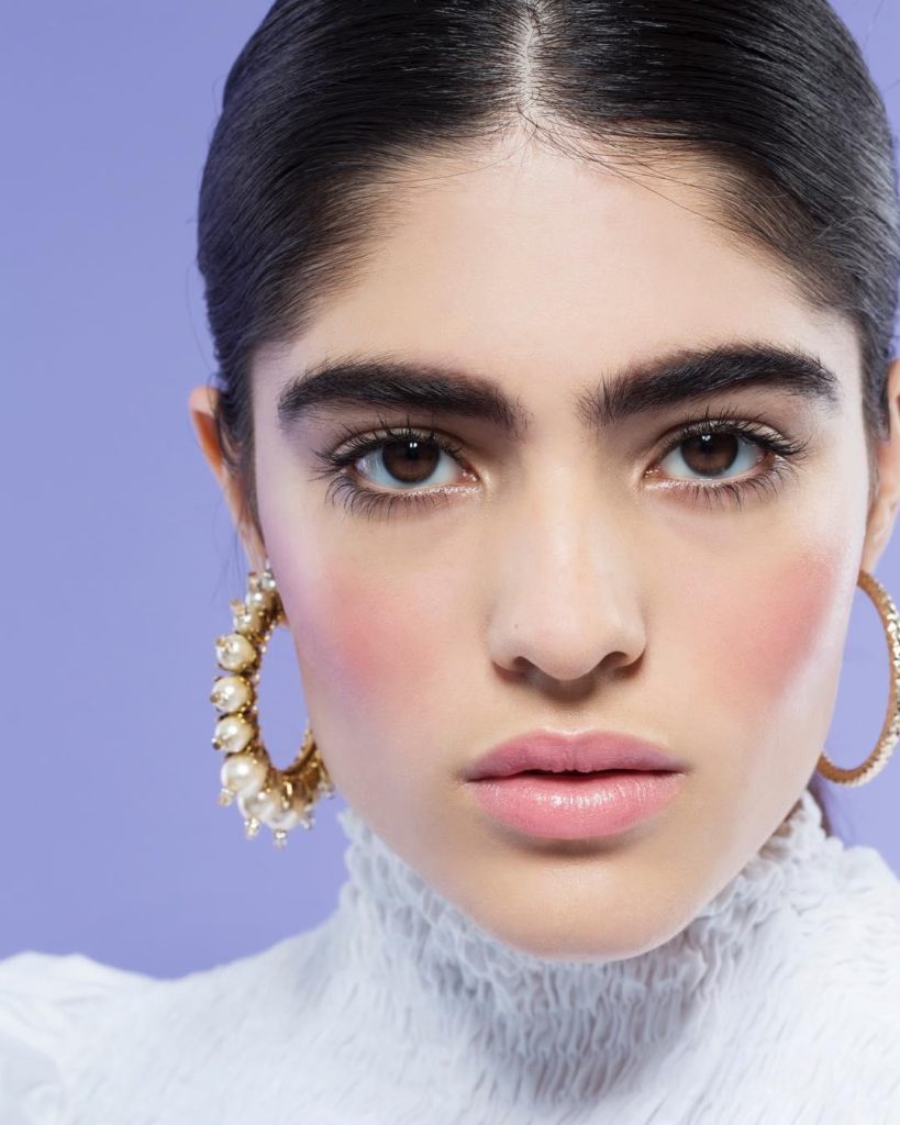 Выберите немерцающую румяну в приглушенном розовом, персиковом тоне и кончиками пальцев нанесите на свои щеки. Если у вас естественные темные и подчеркнутые ресницы и брови, вы почти уже готовы. Для тех, кто является светловолосым, идите вперед и наполните брови (удерживая их на «светлой» стороне).