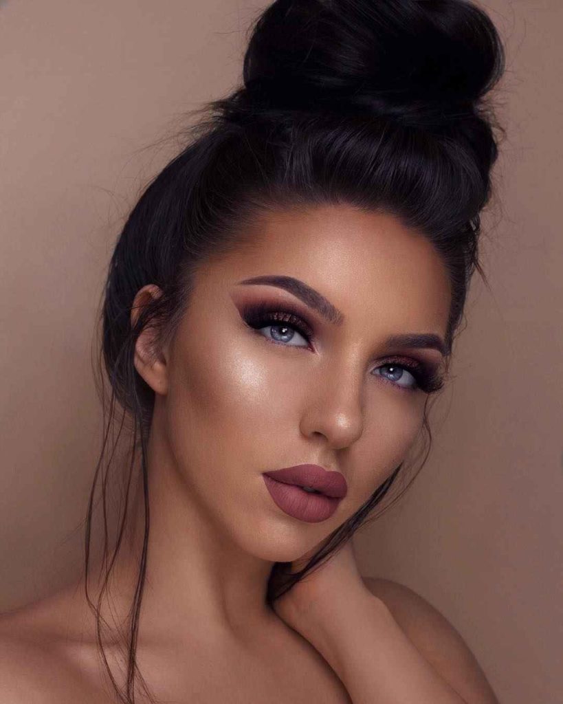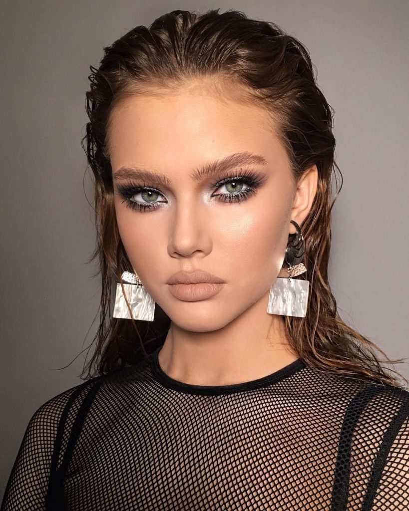 - Вечерний макияж для карих глаз отличается яркостью и насыщенностью, самыми тёмными и чёрными цветами.