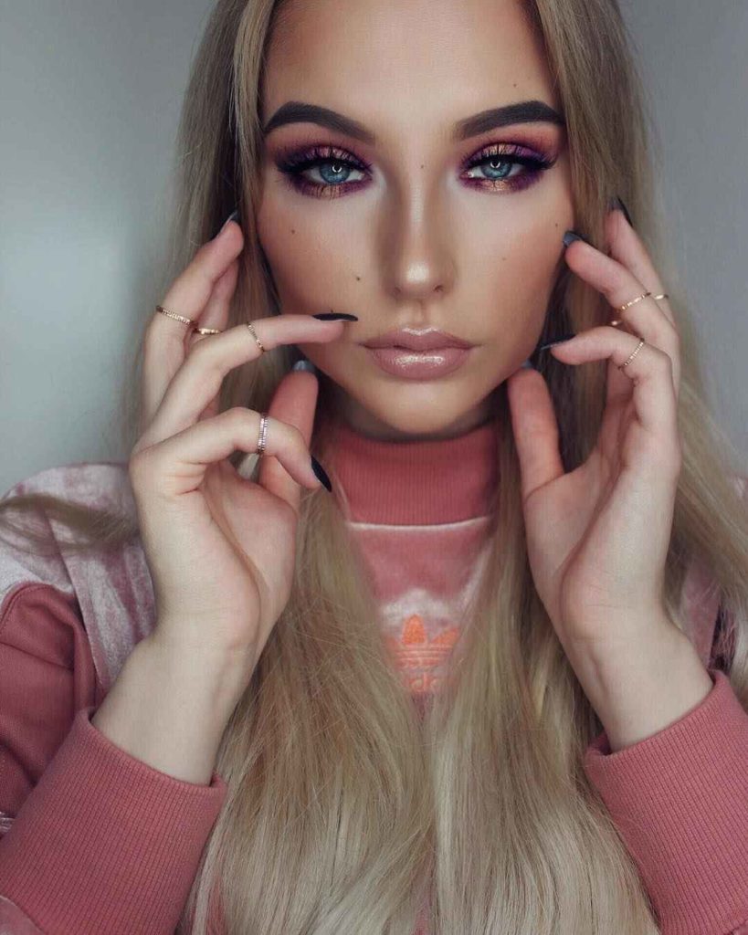 Классический рок-макияж создается с акцентом на глаза, которые должны обрести выразительность и яркость, необходимые качества для рокового взгляда, чего и требует дерзкий макияж. Для начала нужно слегка припудрить верхние веки. Эта процедура поможет теням лучше лечь на глаза. Что касается цвета, то подойдут темные и насыщенные тени: фиолетовые, темно-серые, коричневые. Можно использовать классический черный цвет, что добавит эпатажа образу. Рокерский стиль требует от теней матовой, а не глянцевой текстуры.