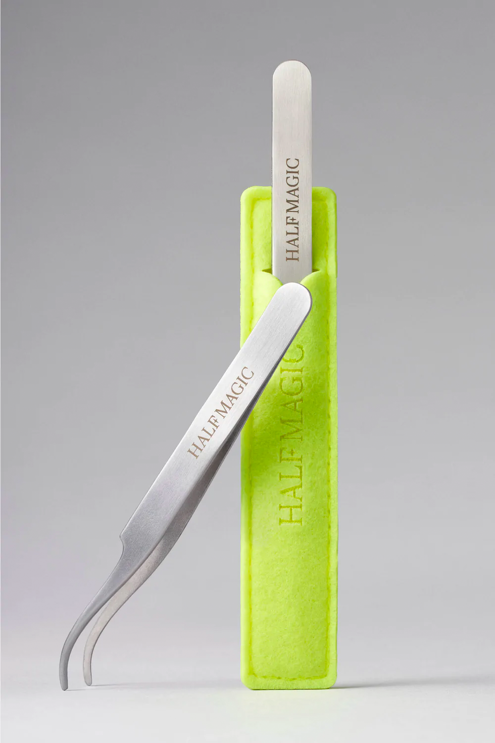 Load your lashes with a volumizing mascara, but to avoid them looking spidery, brush them with a after every coat. Then, grab a set of ; you’ll want them to be extra small, so that they fit between your lashes. Dot the back of each gem with and place them between your lashes with a for precision. They’ll covertly peek out from behind your lashes, yet shine when they hit the light.