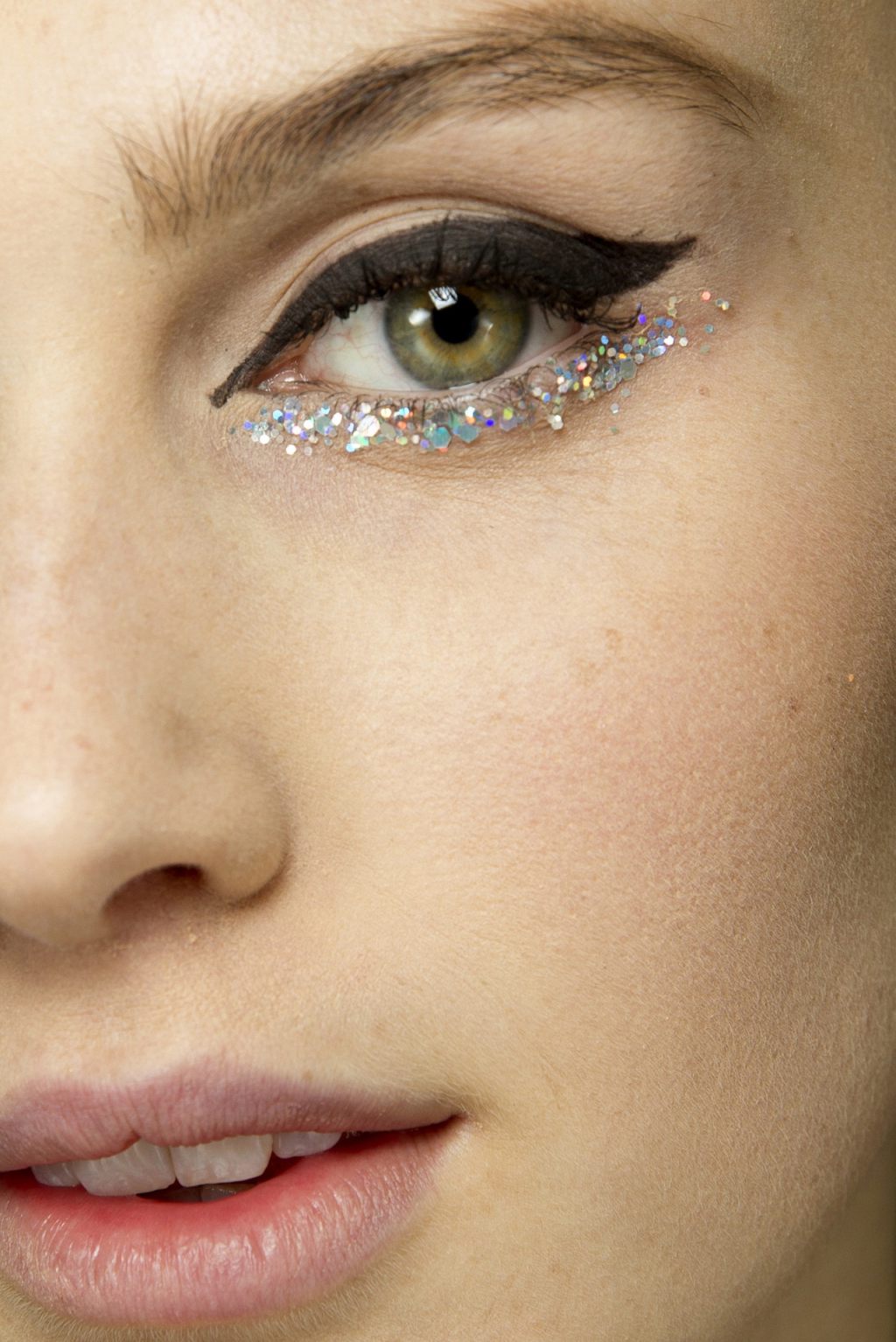 Пожалуй, самым смелым трендом являются блестки (или как принято говорить: глиттер). Согласитесь, отличный декор для новогоднего макияжа. Но и использовать его нужно с умом, иначе вы скорее будет выглядеть как новогодняя елка.