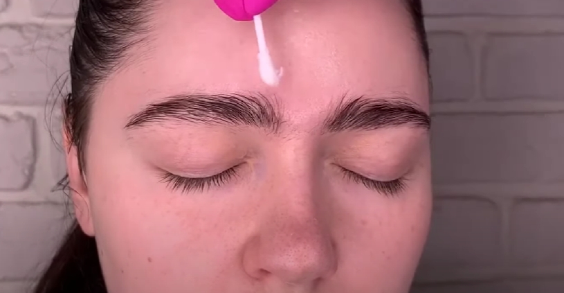 - Средство распределяем по направлению проста волос в подбровной линии. Лучше всего, если обрабатываемая зона будет в несколько волосков, так вы сможете провести тест для уверенности в своих действиях. Если волоски выщипаны правильно, можете расширить линию.