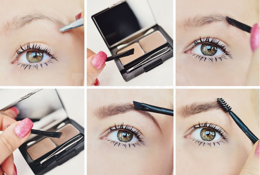Косметическим карандашом прорисовывается будущая форма бровей, а затем они присыпаются тальком или детской присыпкой.