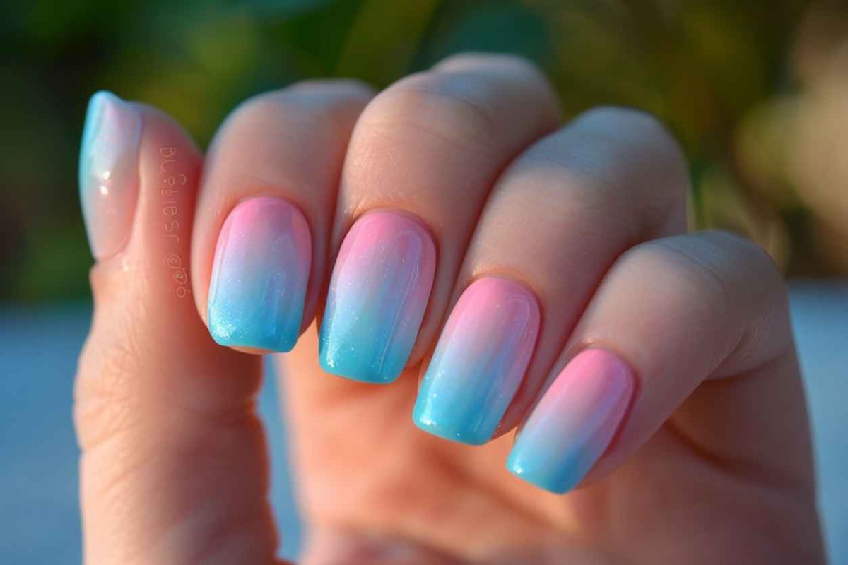Беспроигрышный вариант – прибегнуть к градиентной растяжке, заключающейся в переходе между двумя или более оттенками. Традиционные для морской темы голубой или синий цвет будут удачно совмещаться с нежно-розовым, мятным или нюдовым тоном.