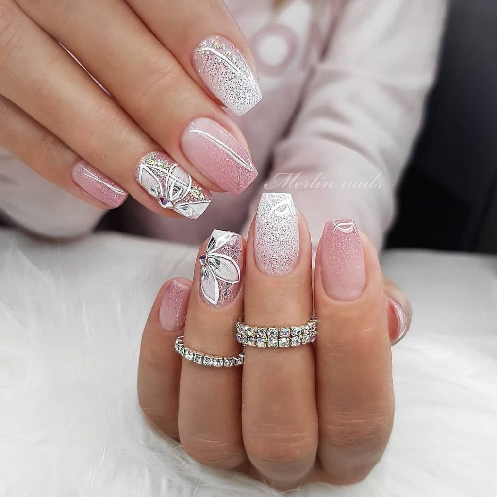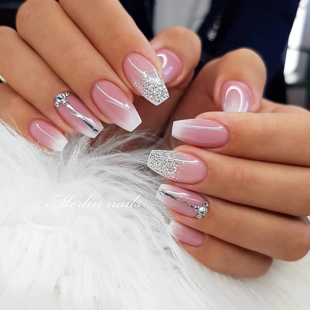 Блестки и стразы в минималистичном маникюре сезона 2023/24