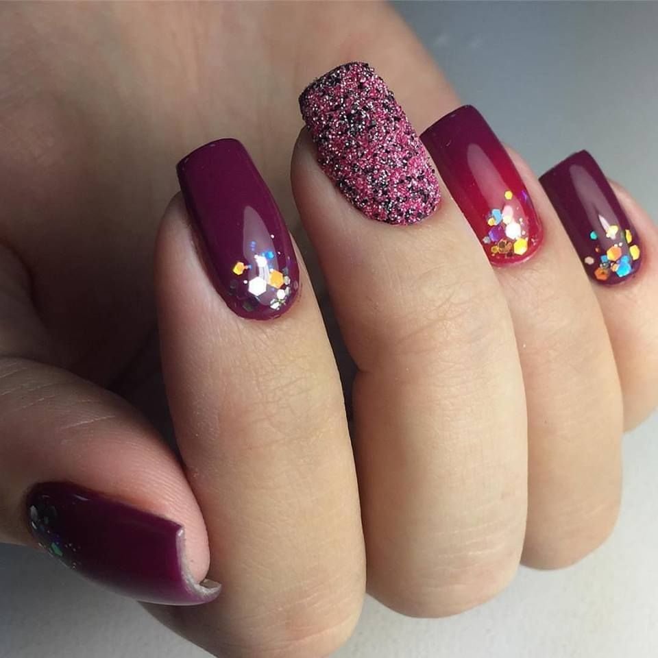 Можно аккуратно «посадить» на кончики безымянных пальцев красивые блестки, а другие ноготки «оставить» чистыми. А можно сделать декор-элементы на все пальцы, но при этом просто учитывать пропорции и не использовать одновременно сразу несколько технологий и декор-элементов.