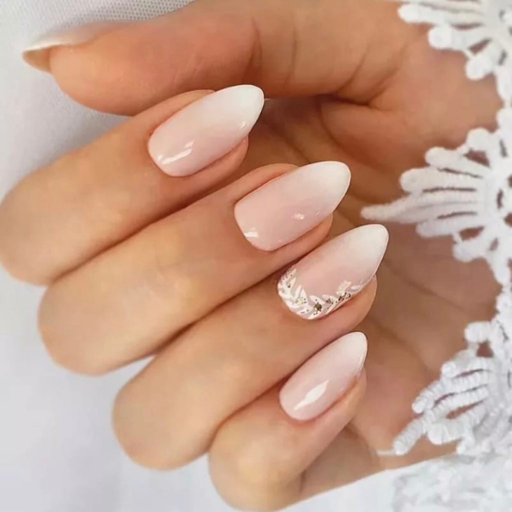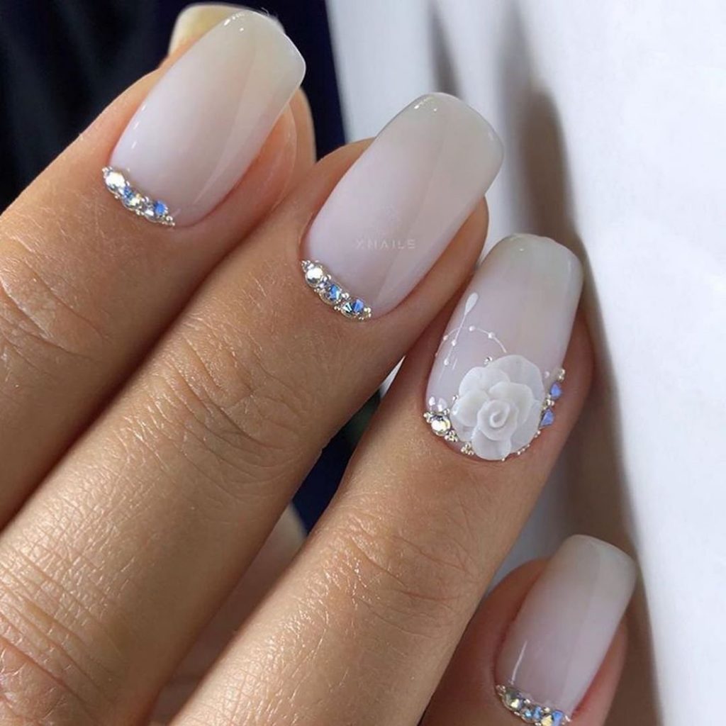 Такой дизайн исполняют в нюдовой тональности, чтобы не делать на ногтях лишних акцентов. Исключение – особая тематика свадьбы, которая требует специального дресс-кода.