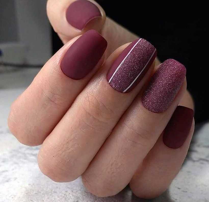 Популярностью в этом сезонебудут пользоваться такие матовые цвета и оттенки — фиолетовый, голубой, сиреневый, красный, темно-зеленый, бордовый, оранжевый. Матовые ногти не рекомендуется декорировать (блестки или фольга обладают блеском, который как раз и нейтрализуют матовый эффект. Можно нанести на ногти небольшой простой рисунок (цветок, надпись, геометрию или узор).