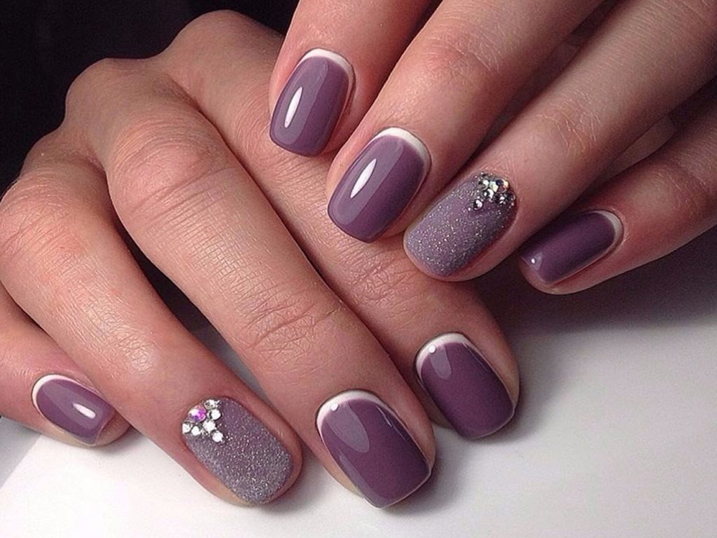 Обладательницам коротких ноготков необязательно отказываться от цветных оттенков лака. Красиво будут смотреться голубые и фиолетовые тона, которые дополняются матовым покрытием. Допустимо поставить легкие акценты на нескольких ноготках. Не избегайте асимметричных дизайнов.
