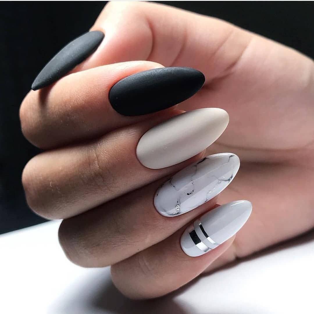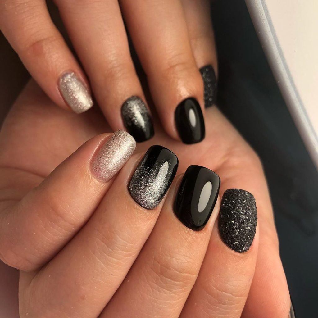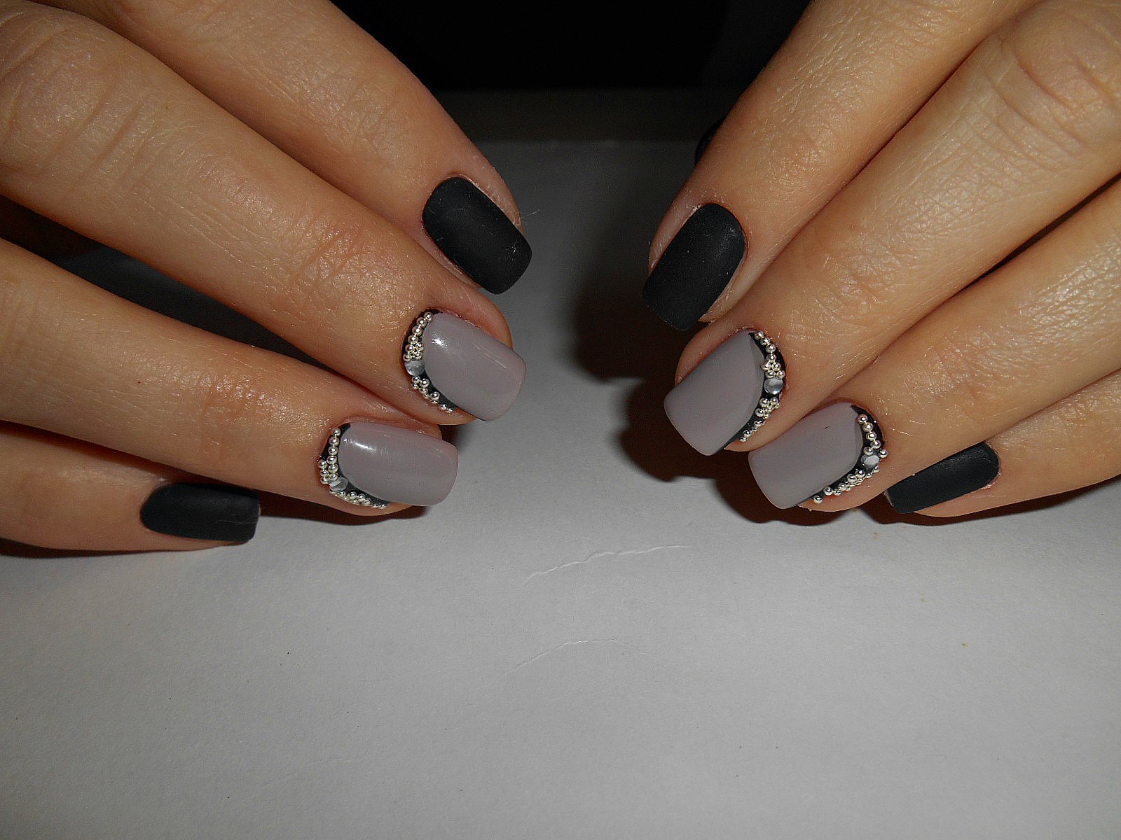 Сочетание черного и серого цветов создает элегантный и стильный маникюр. Вы можете использовать разные оттенки серого для создания градиента или сочетать их в блоки.