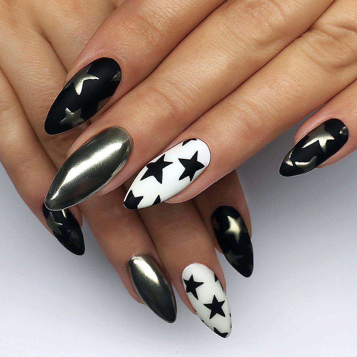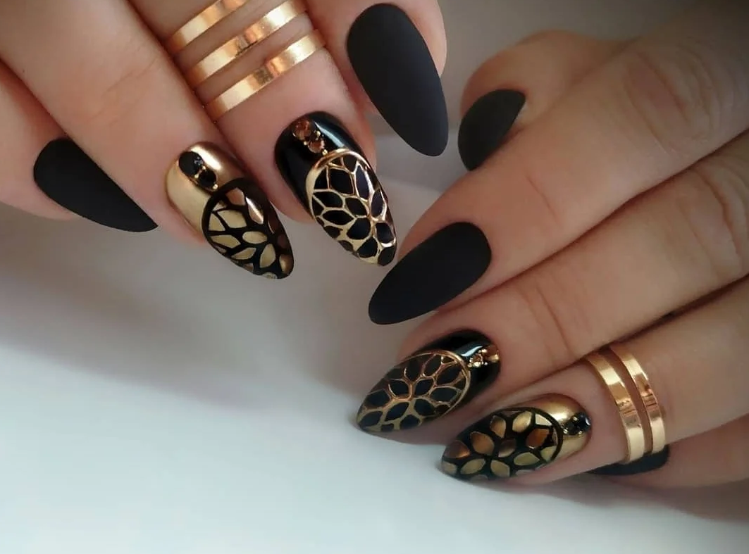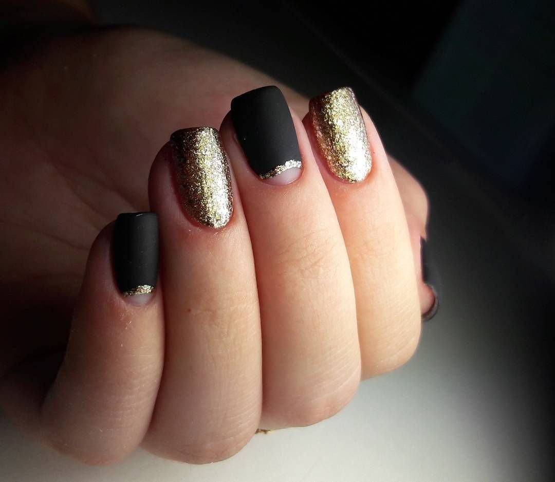 Сочетание золота или серебра с черным матовым топом создает стильный и элегантный маникюр. Вы можете использовать блестки или фольгу, чтобы добавить еще больше блеска и яркости.
