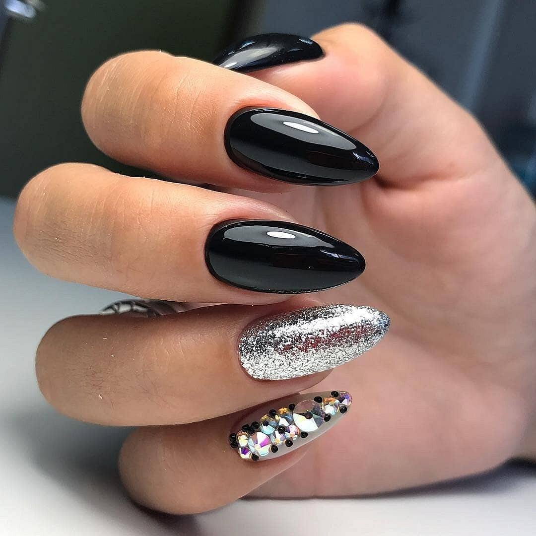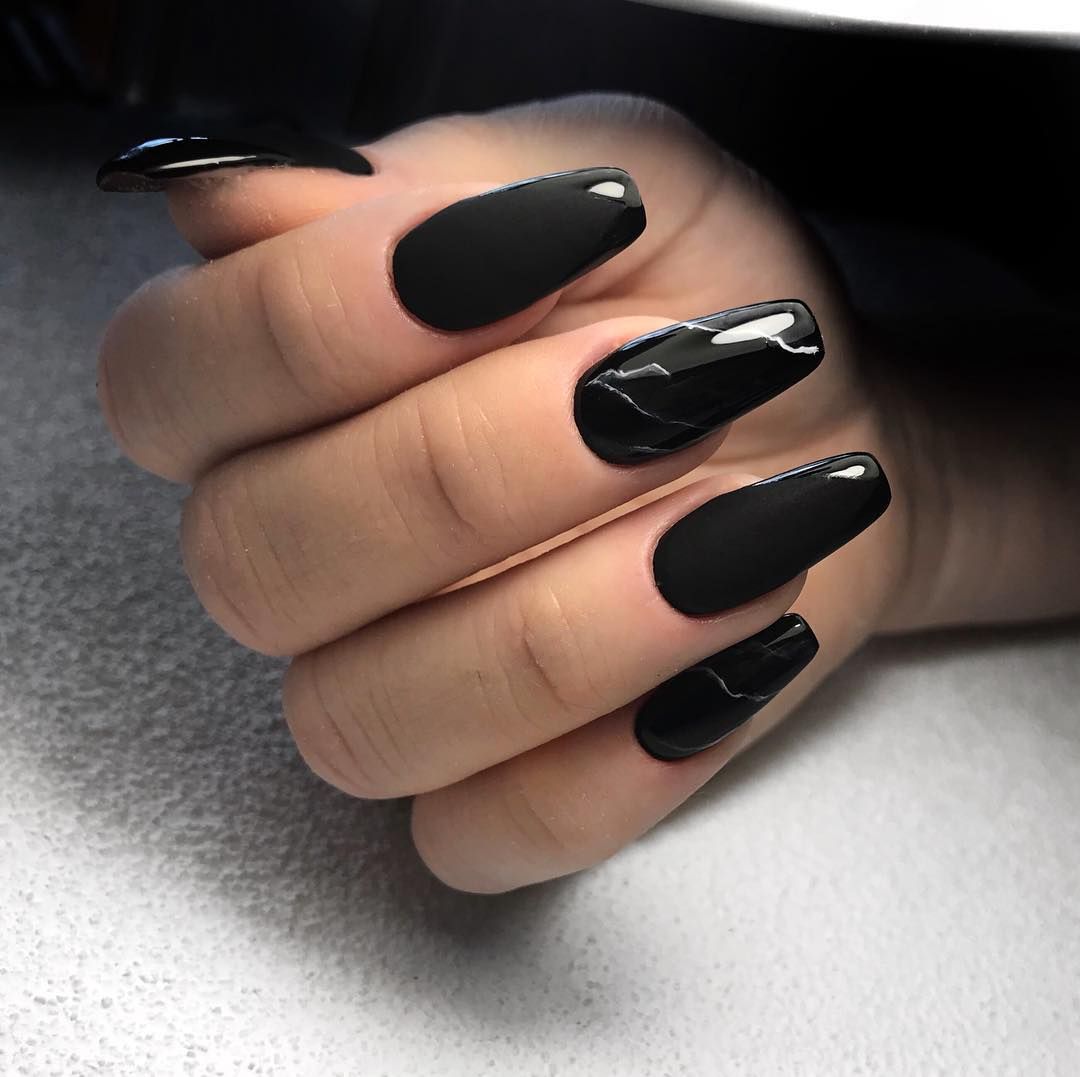 Универсальный черный подходит для ногтей любой формы. Сочетается практически с любым цветом наряда.