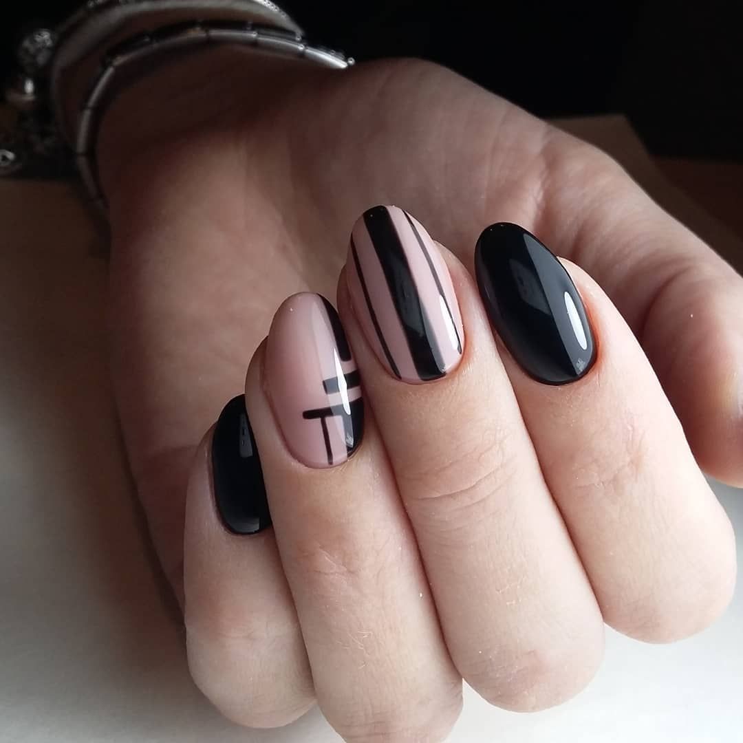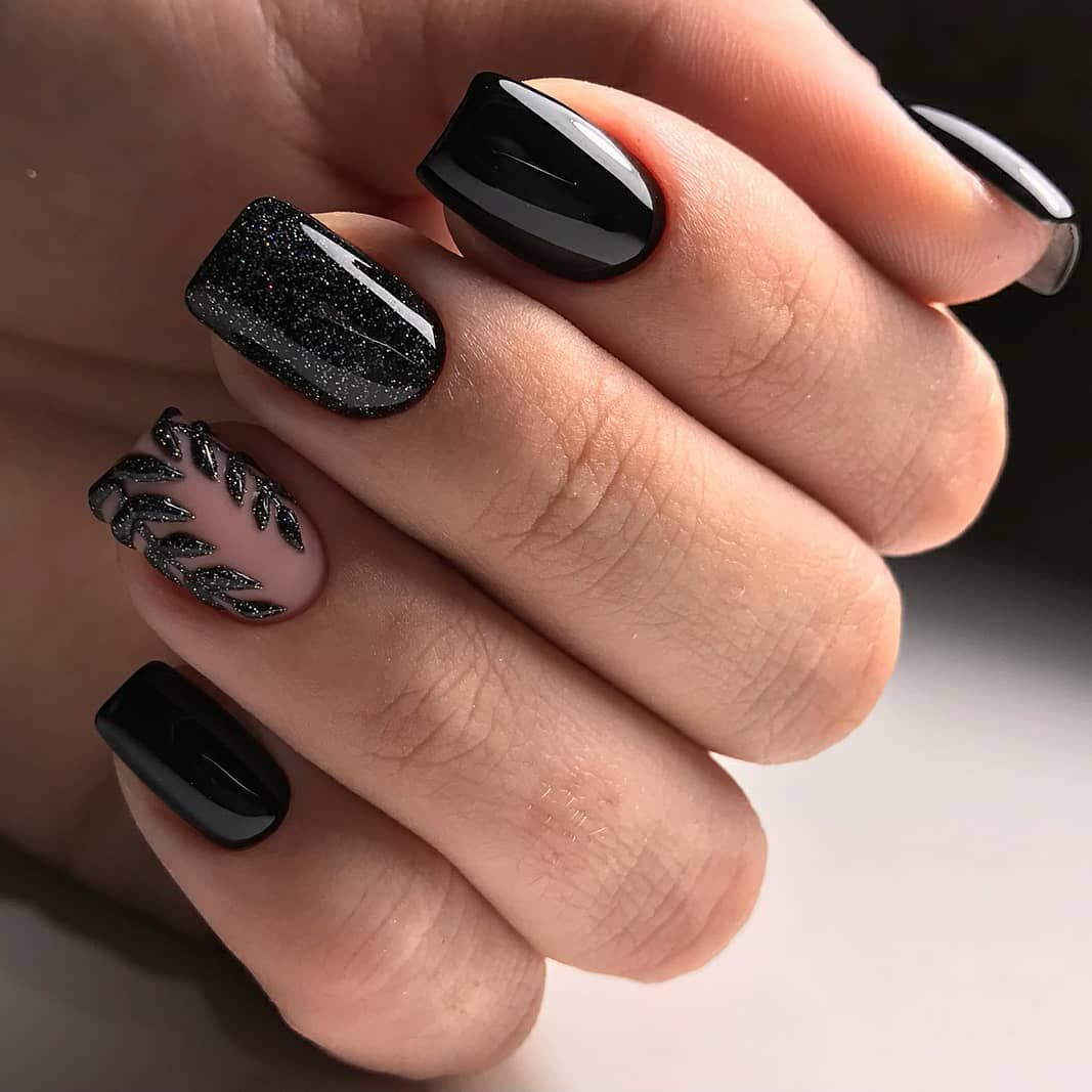 Выбирая дизайн, важно понимать, что черный цвет сам по себе эффектный и будет привлекать к себе внимание, поэтому мастера нейл-арта рекомендуют сосредоточиться на разбавленных дизайнах: глиттер, геометрические принты, минимализм, френч. Но это вовсе не означает, что другие варианты находятся под строгим запретом