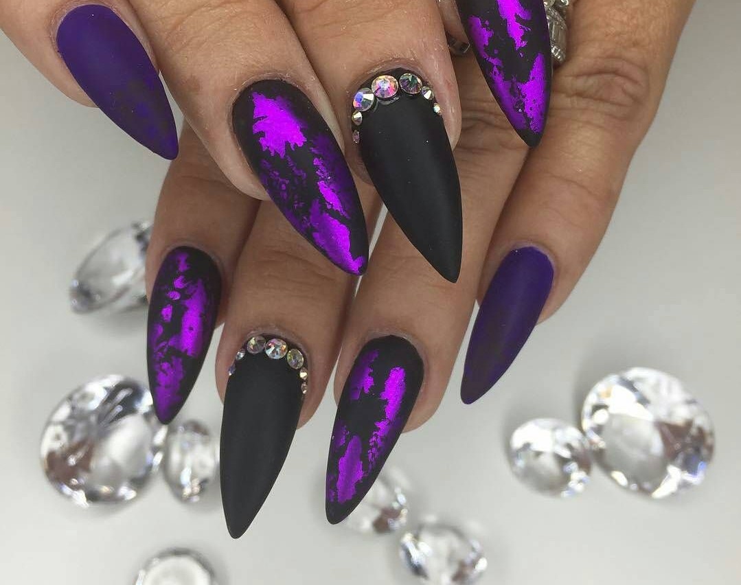 Фиолетовый цвет прекрасно дополняет черный матовый лак, создавая яркий и элегантный маникюр. Выберите фиолетовый оттенок, который соответствует вашему настроению и стилю.