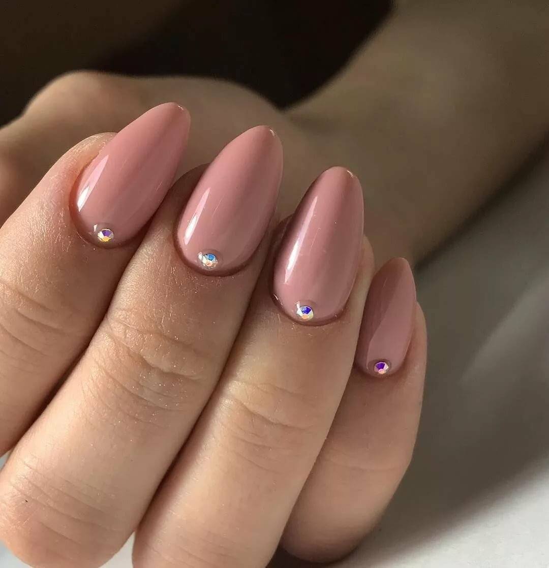 Маникюр с блестящим акцентом можно сделать по-разному. Стразы популярны среди элементов ногтевого декора. Их присутствие в маникюре обладает омолаживающим эффектом. Они ассоциируются с легкостью, романтичностью и нарядностью. Чтобы не перегружать образ в дизайне на каждый день достаточно сделать акцент на пару ногтей. Их также можно выделить контрастным цветом.