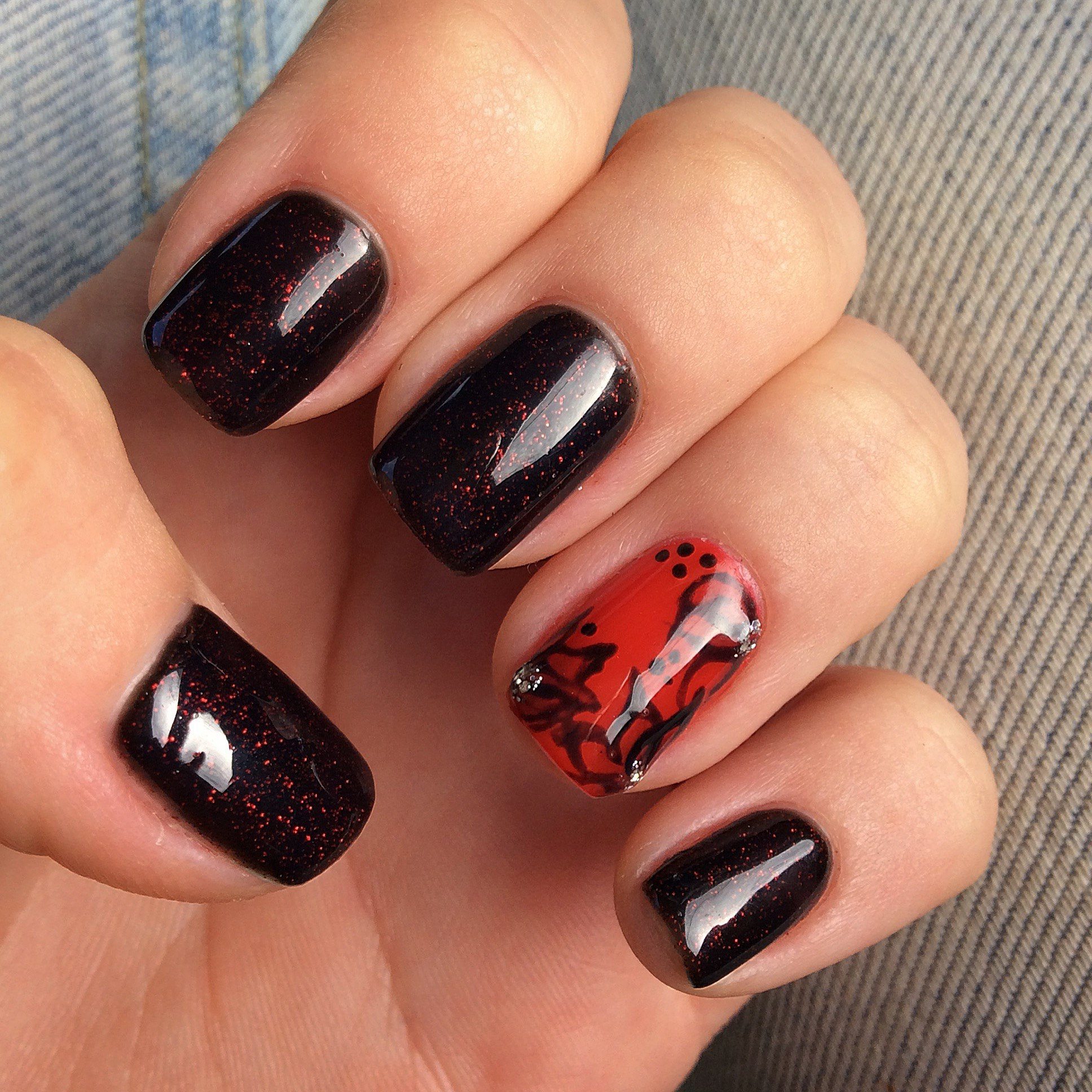 Любительницы сочетать красный и черный цвет в маникюре — это девушки, которые хотят быть в центре внимания. Красно-черный маникюр часто выбирают девушки, у которых есть строгость в стиле одежды. При удачном сочетании черного и красного цвета в маникюре, можно визуально удлинить ногтевую пластину. Красно-черный маникюр можно разнообразить блестками, втиркой, росписью белого, золотого и серебряного цвета, сочетанием глянцевого и матового лака.