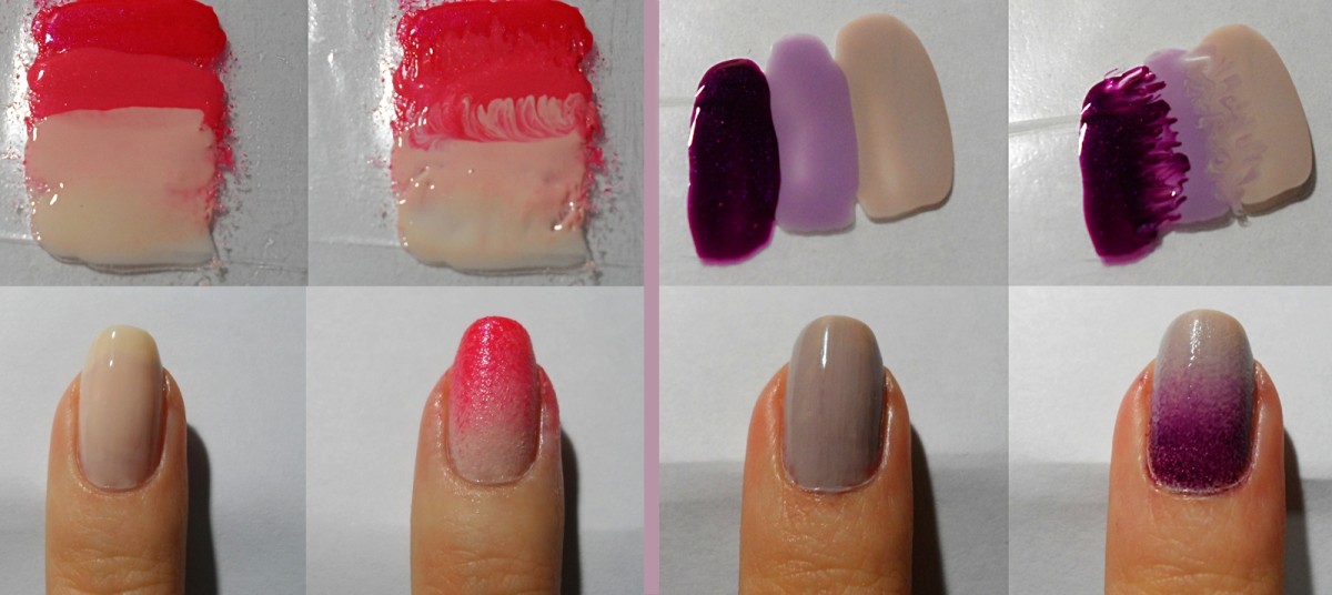 Когда все готово, можно приступать в работе. Градиентный маникюр выполняется двумя способами.