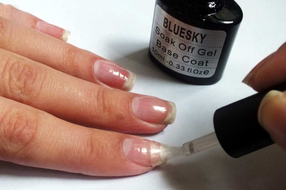 На ноготки накладывают базовое покрытие, которое будет дополнительно выравнивать их и обеспечивать защитную функцию. Также база усиливает сцепление с цветным слоем, поэтому пропускать данный этап не рекомендуется.