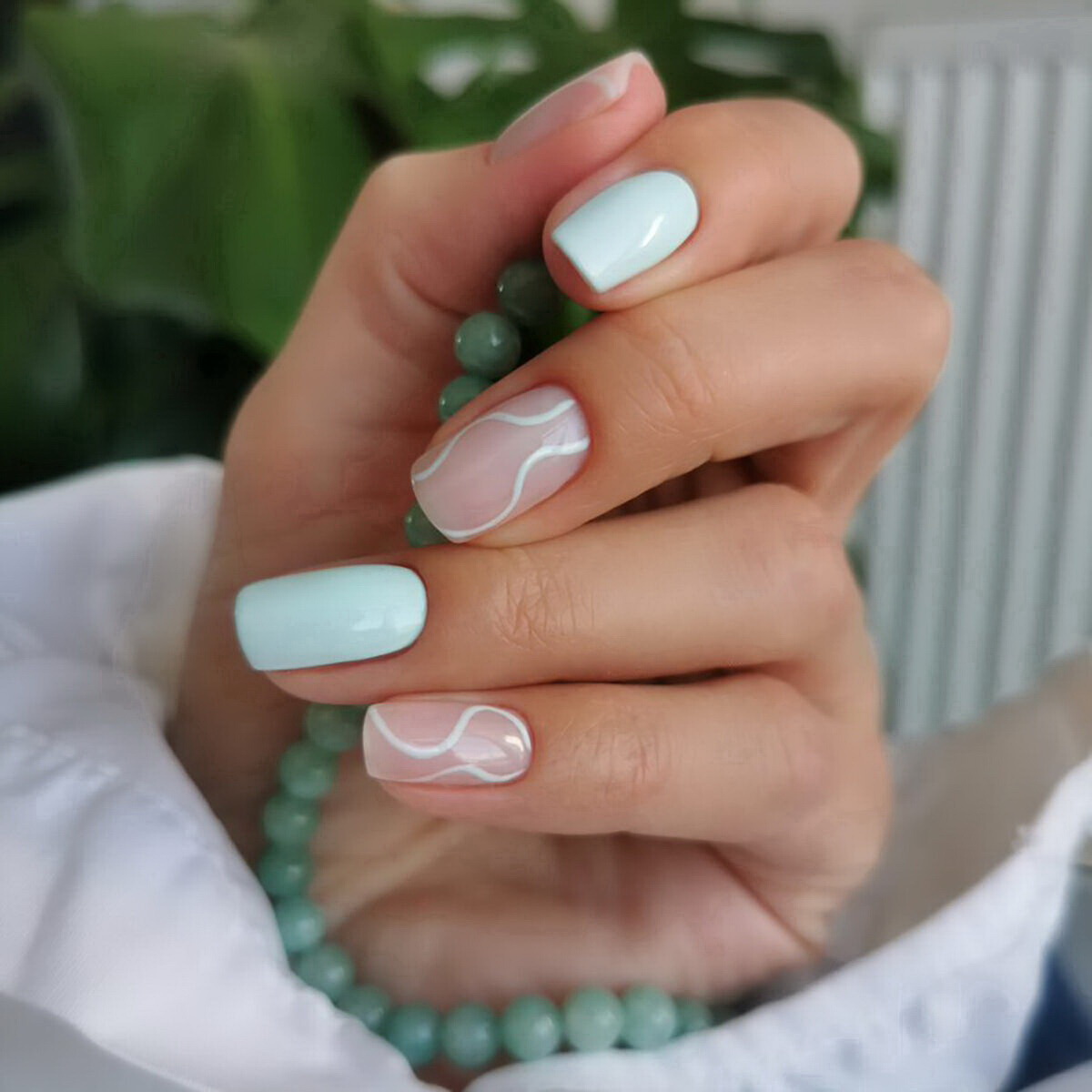 Многие уже давно полюбили эффект омбре или градиента на ногтях. Значит, не стоит себе отказывать – смело воплощайте эту технику в зеленых оттенках. Например, от полупрозрачного оттенка зеленого чая к оливковому. Чтобы показать зеленый колор с другой стороны, можно сделать дуэт фисташкового с розовым, голубым.