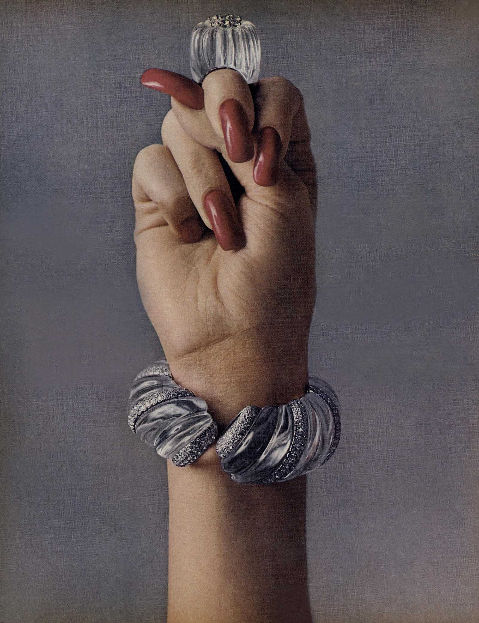 В 1934 году стоматолог Максвелл Лаппе создал первый набор накладных ногтей. Он придумал их для клиентов, которые грызли ногти. В 1940-м в моду входят длинные красные ногти — спасибо Голливуду и актрисе Рите Хейворт. В 1970-е накладные ногти стали общедоступными. Они пользовались большой популярностью из-за простоты в использовании и возможности замаскировать недостатки.