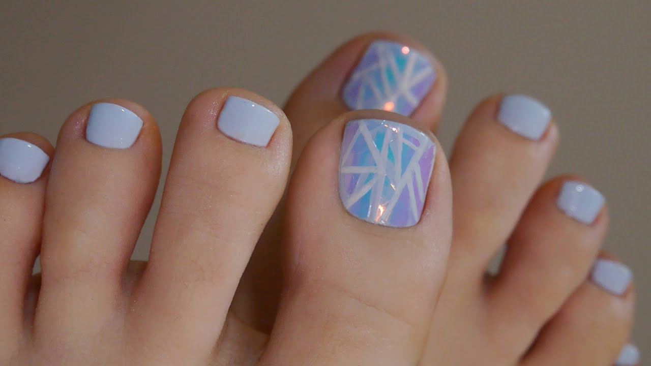 Особой популярностью пользуется техника «битое стекло». Смотрится необычно и привлекательно. Лучше использовать лаки пастельных тонов. Использование полосок фольги — модный тренд 2023 года. С их помощью можно создать гламурный дизайн. Чаще всего используются для нанесения геометрических рисунков. Также украсит ваш педикюр сусальное золото серебристого, бронзового, рубинового или сапфирового оттенков с легким переливом.