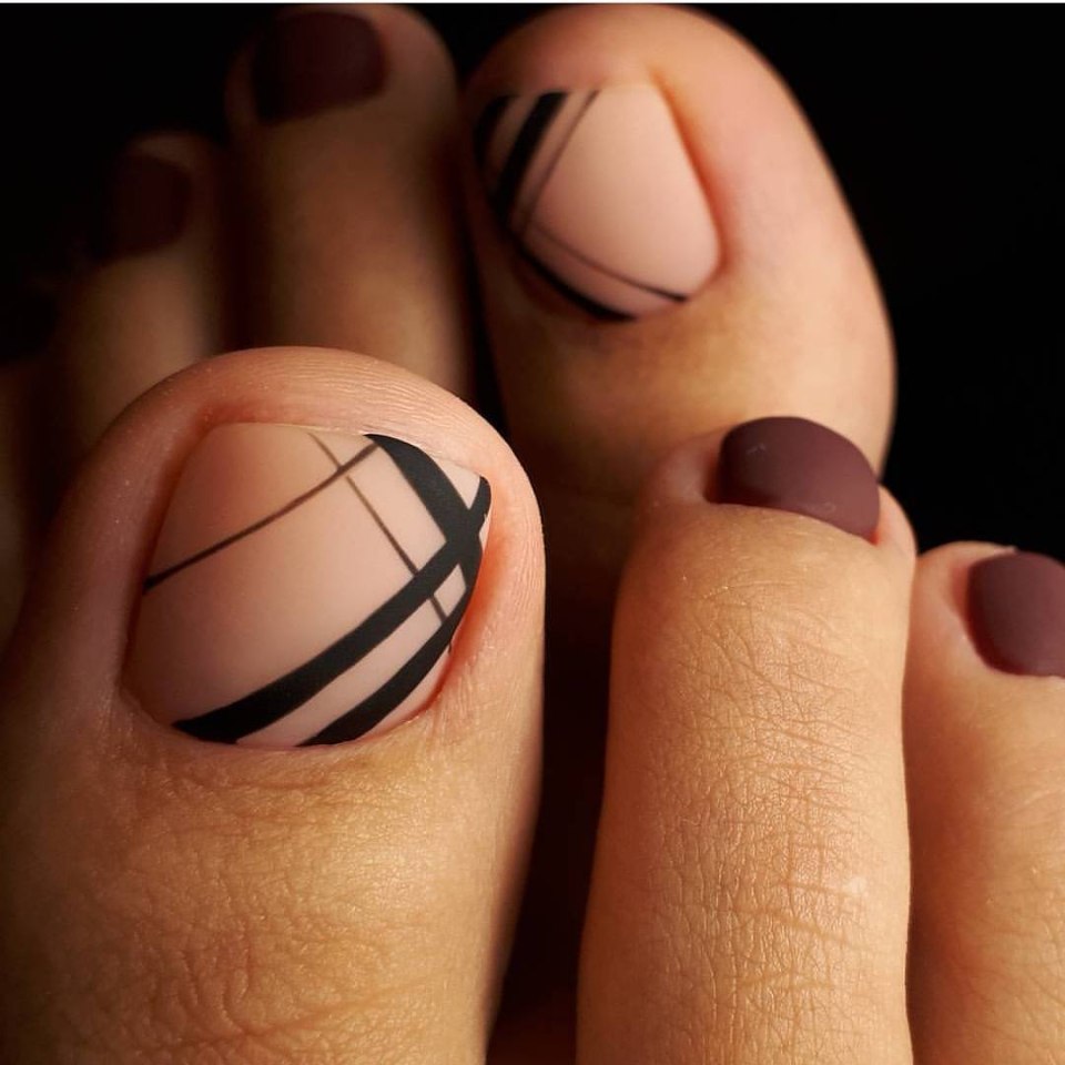 Геометрические рисунки на ногтях – изюминка весеннего сезона 2023 года. Вы можете нарисовать треугольники, квадраты или обычные полосы, чтобы придать более дерзкий эффект своему педикюру. Такие узоры будут хорошо смотреться с любым оттенком лака.