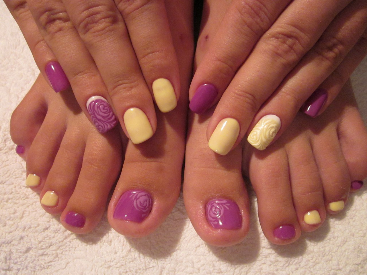 Это возможность проявить собственную креативную фантазию и на некоторое время перевоплотиться в художника, создающего шедевр. Только в качестве холста девушке предстоит использовать собственные ногти, украшая их всевозможными узорами. Это могут быть цветы, орнаменты, геометрические фигурки или точки, нарисованные дотсами. Фактически нарисовать на ногтях можно что угодно. Чтобы маникюр и педикюр были выполнены в одном стиле, на ногах можно повторить рисунок. Но не на всех ногтях, а лишь на нескольких. Этот интересный ход уже создаст единство стиля, но позволит сэкономить время.