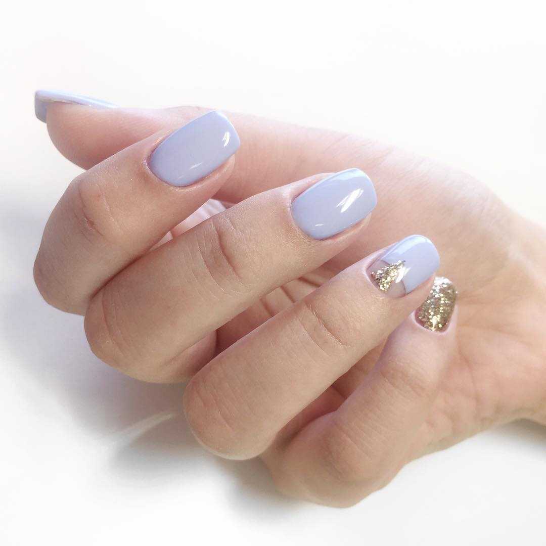 Лавандовый оттенок в зимнем маникюре стильно сочетается с серым, белым, светло-розовым, пудровым.