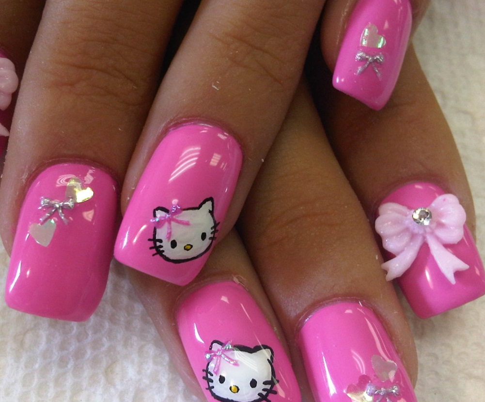 Интересно будут смотреться ногти с мультяшными рисунками и рисунками в виде животных.
