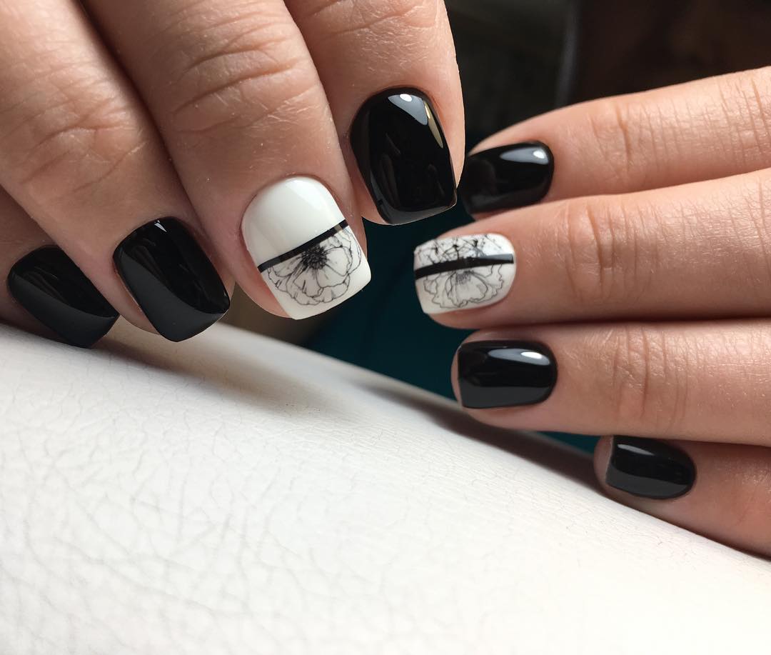 Белый с черным – универсальное сочетание, подходящее и для молоденьких девушек, и для серьезных бизнес-леди. Все зависит от выбранного дизайна: он может быть игривым, более светлым или темным, серьезным, яркими или сдержанным.