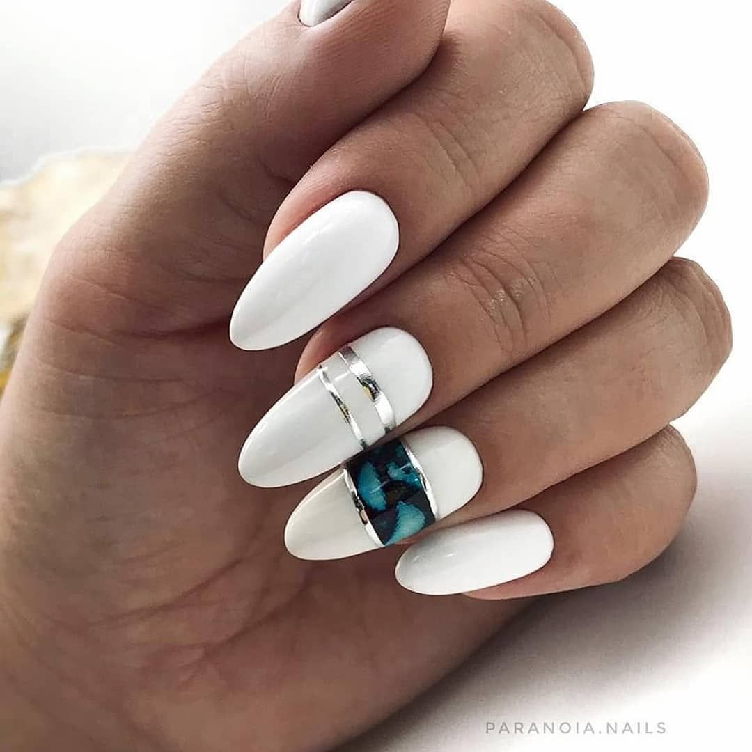 Если говорить о наиболее подходящих вариантах красочного и яркого маникюра, то обратите особое внимание на белые ногти с синим, бирюзовым, зеленым, розовым и персиковым