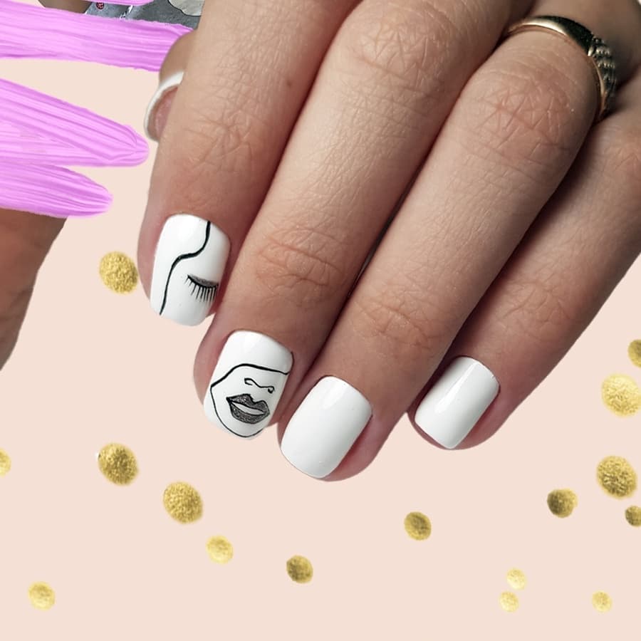 Эстетические силуэты и лица на белых ногтях – еще один невероятный хит сезона. Этот дизайн за несколько сезонов приобрел большую популярность и в этом сезоне по-прежнему будет активно использоваться.