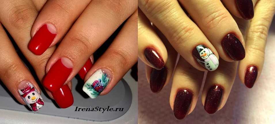 Такой дизайн ногтей со снеговиком можно создать, как используя простые лаки и акриловые краски, так и гелевые. Разница, конечно же, это качество покрытия, гелевые покрытия при правильном его нанесении, могут сохранять свою первоначальную форму 2-3 недели. Рассмотрим пример с гелевым покрытием.