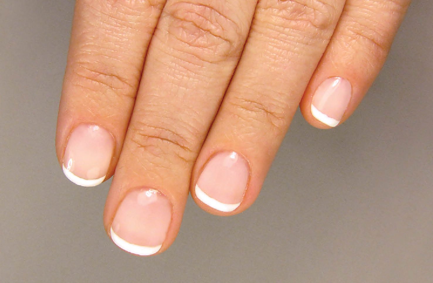 оттенок на ногтях, делает свободный край белым, играет роль топа в маникюре,
