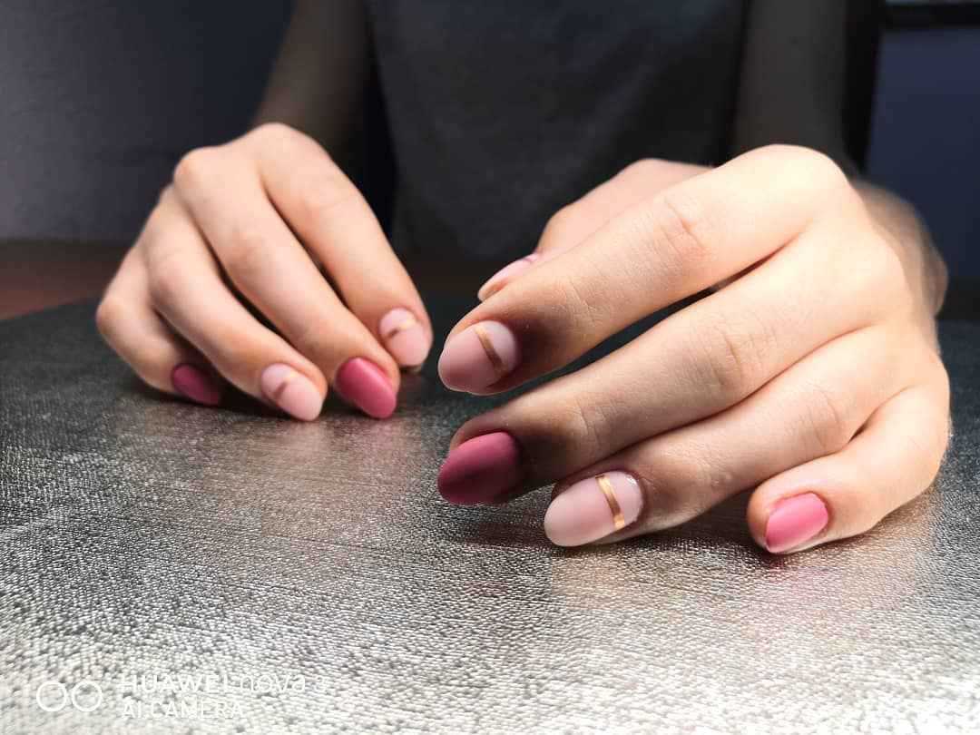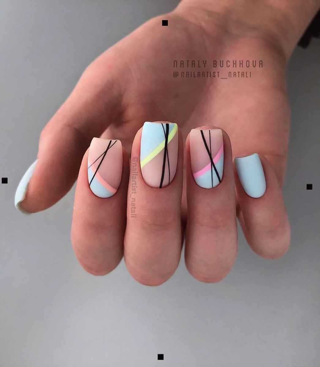 Сочетать подобные оттенки можно по-разному. Это могут быть полоски, геометрические фигуры или обыкновенные кляксы. Такая цветовая вариация очень популярна в салонах красоты среди молодых девушек.