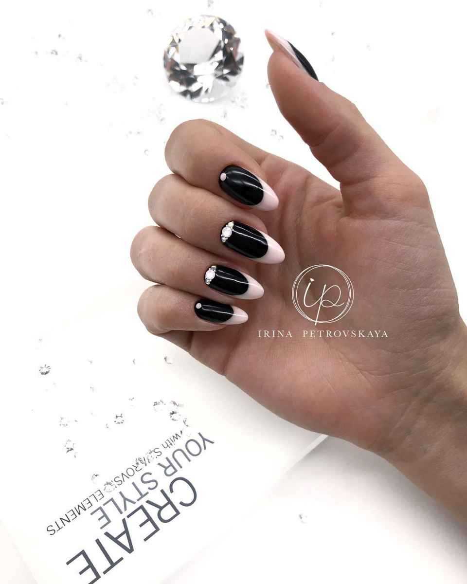 Учитывая моду на минимализм, самым актуальным будет однотон на коротких квадратных ногтях и миндале. Тем не менее дизайны в сочетании с черным цветом просто сногсшибательны, и мы вынуждены сделать исключение, и поддаться этим манящим рисункам и блестяшкам.