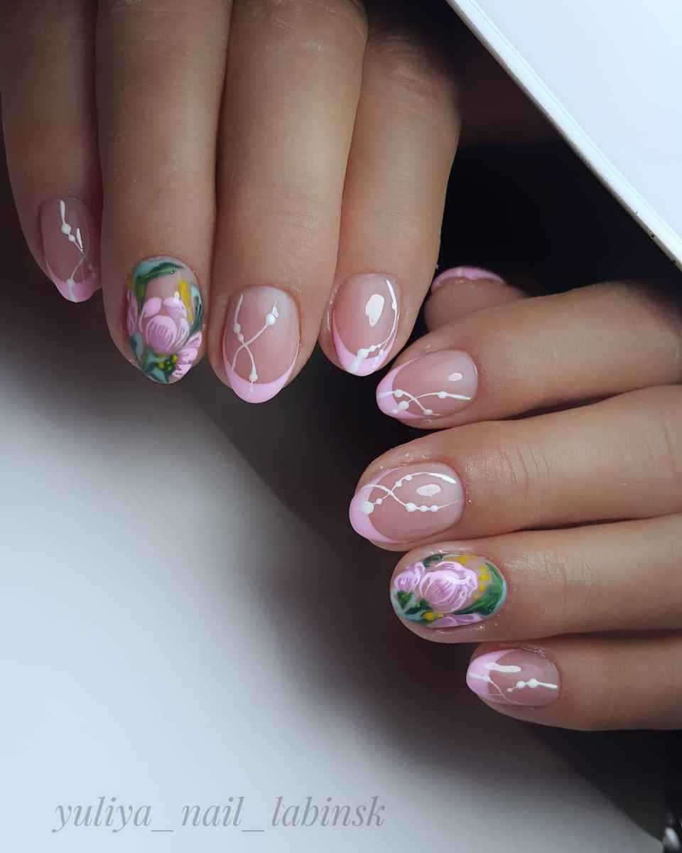 Рисунки при создании нежно-розового френча могут быть самыми разными