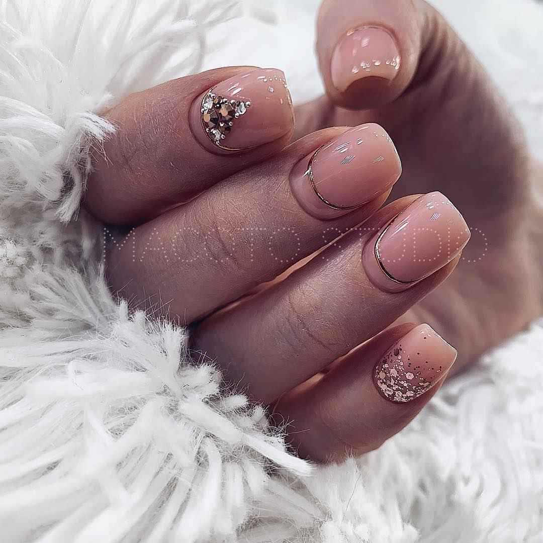 Нюдовый маникюр выбирают приверженцы всего натурального. Это отличный вариант для повседневного применения, даже если в офисе существуют строгие требования к стилю и форме одежды. Разбавив бежевое покрытие вкраплениями серебра, можно внести в рабочую атмосферу яркие нотки и ожидание праздника.