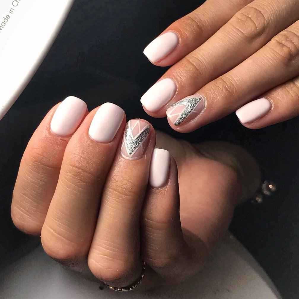 - Монохромное покрытие выбирают сторонники минимализма в украшениях. Серебряный лак в данном случае рекомендуется выбирать в качестве акцента, нанося его на один или два пальца, в то время как остальные будут окрашены белым лаком.
