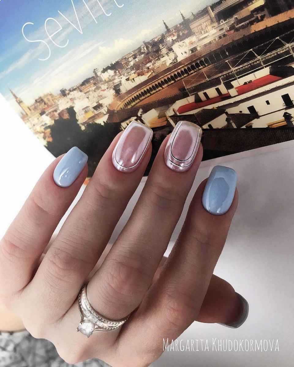 Приверженцы холодного стиля могут попробовать объединить синий и серебристый цвета в ногтевом дизайне. Используя различные оттенки синего и голубого, можно создавать различные по яркости, насыщенности и характеру дизайны. Дизайн в морском или небесном стиле поразит свежестью, а серебряные акценты сделают его роскошным.