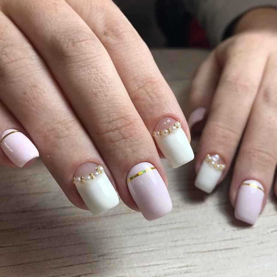 - Белый френч с серебристой полоской – прекрасный вариант и для повседневного применения, и для праздника.